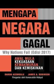 Nah, apakah negara Indonesia termasuk negara gagal? Menurut saya Indonesia tidak akan menjadi negara gagal jika negara Indonesia memanfaatkan sumber daya alam dengan baik. Tetapi ketergantungan negara akan sumber daya alam cenderung mengarah pada korupsi, dan inflasi. Negara-negara gagal itu karena lembaga-lembaganya merungkah, dan korupsinya amat banyak. Negara dengan lembaga yang ekonomi yang inklusif cenderung kaya. Misalnya, Korea Selatan dan Jerman Barat. Sedangkan negara dengan lembaga ekonomi yang ekstraktif seperti Jerman Timur dan Korea Utara cenderung miskin. Selain faktor lembaga, Why Nations Fail juga menunjukkan “pembalikan keberuntungan” (reversal of fortune) dan “kutukan sumber daya alam” (the curse of natural resources) sebagai faktor penentu kekayaan suatu negara. Faktor pembalikan keberuntungan menjelaskan negara-negara non-Eropa eks jajahan Eropa, semacam Indonesia dan Peru, yang mulanya kaya dan maju sekarang lebih miskin sebab Eropa memperkenalkan lembaga ekonomi ekstraktif kepada mereka.