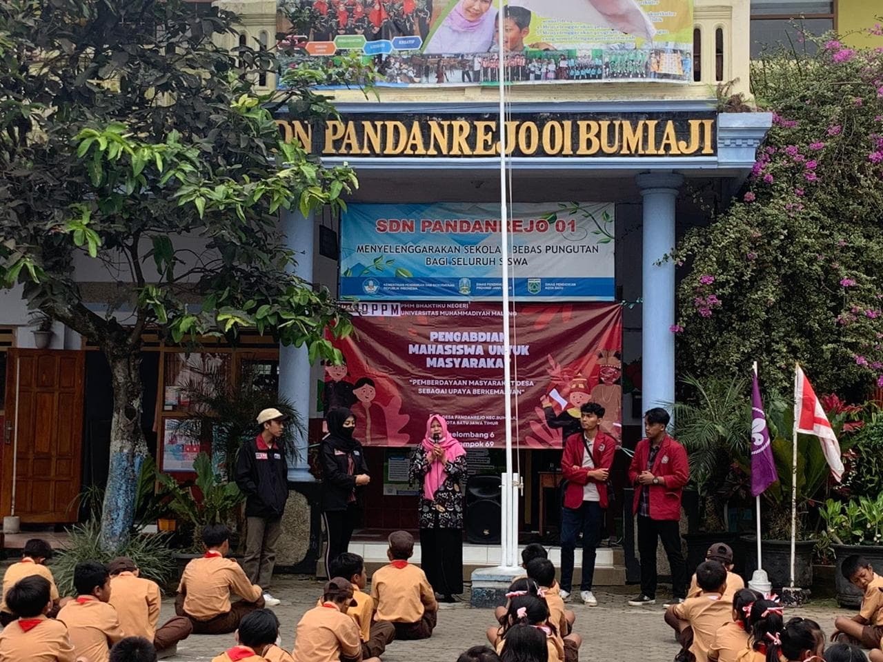 Pengabdian Masyarkat oleh Mahasiswa (PMM) merupakan kegiatan yang dilakukan oleh mahasiswa UMM dalam rangka menciptakan peran mahasiswa untuk bergerak langsung ke masyarakat. Seperti hal nya yang dilakukan oleh kelompok 69 gelombang 6 tahun 2022 untuk bergerak langsung di SDN 01 Pandanrejo. Kegiatan disini merupakan salah satu Proker PMM yang kita usung bertujuan untuk meningkatkan mutu siswa dalam hal siswa yang berkarakter, empati, kreatif, religious dan kompetitif.