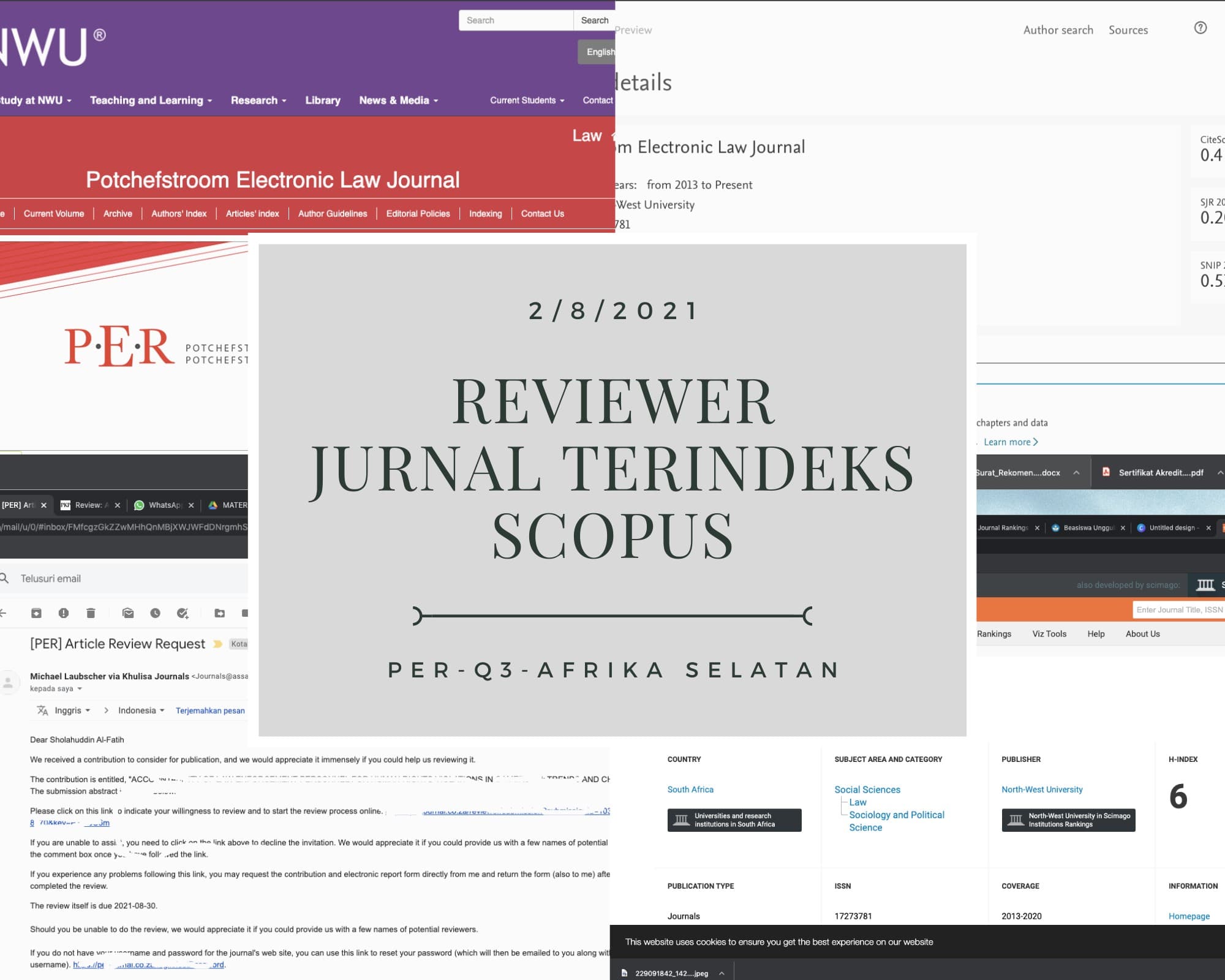 Malang (12/8) - Alhamdulillah, biasanya cuman bisa mantau postingan @siddiqinz dosen hits @ugm.yogyakarta, konco ngopi saya yang berkali kali ngereview artikel di jurnal terindeks Scopus, Qadarallah awal Agustus ini dapat kesempatan mereview di Jurnal Terindeks Scopus Q3, sejak 2013-sekarang, SJR 0.204, Negara Afsel, subject areanya hukum, sosiologi dan ilmu politik, publishernya North-West University.