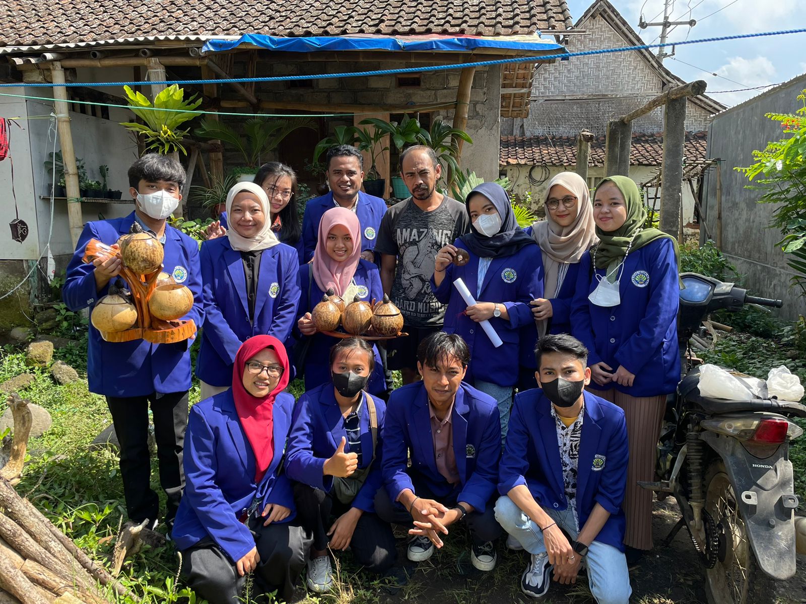Tulungagung – Rabu (15/6), Sebanyak dua belas mahasiswa Universitas Negeri Malang berkesempatan mengunjungi perajin batok kelapa di Desa Samar, Kecamatan Pagerwojo, Kabupaten Tulungagung, Jawa Timur. Kegiatan tersebut merupakan rangkaian kegiatan Kuliah Kerja Nyata (KKN) Reguler pada Semester Antara 2021/2022 Universitas Negeri Malang (UM) yang bertujuan untuk mengetahui rutinitas industri kerajinan yang selama ini digeluti warga Desa Samar.