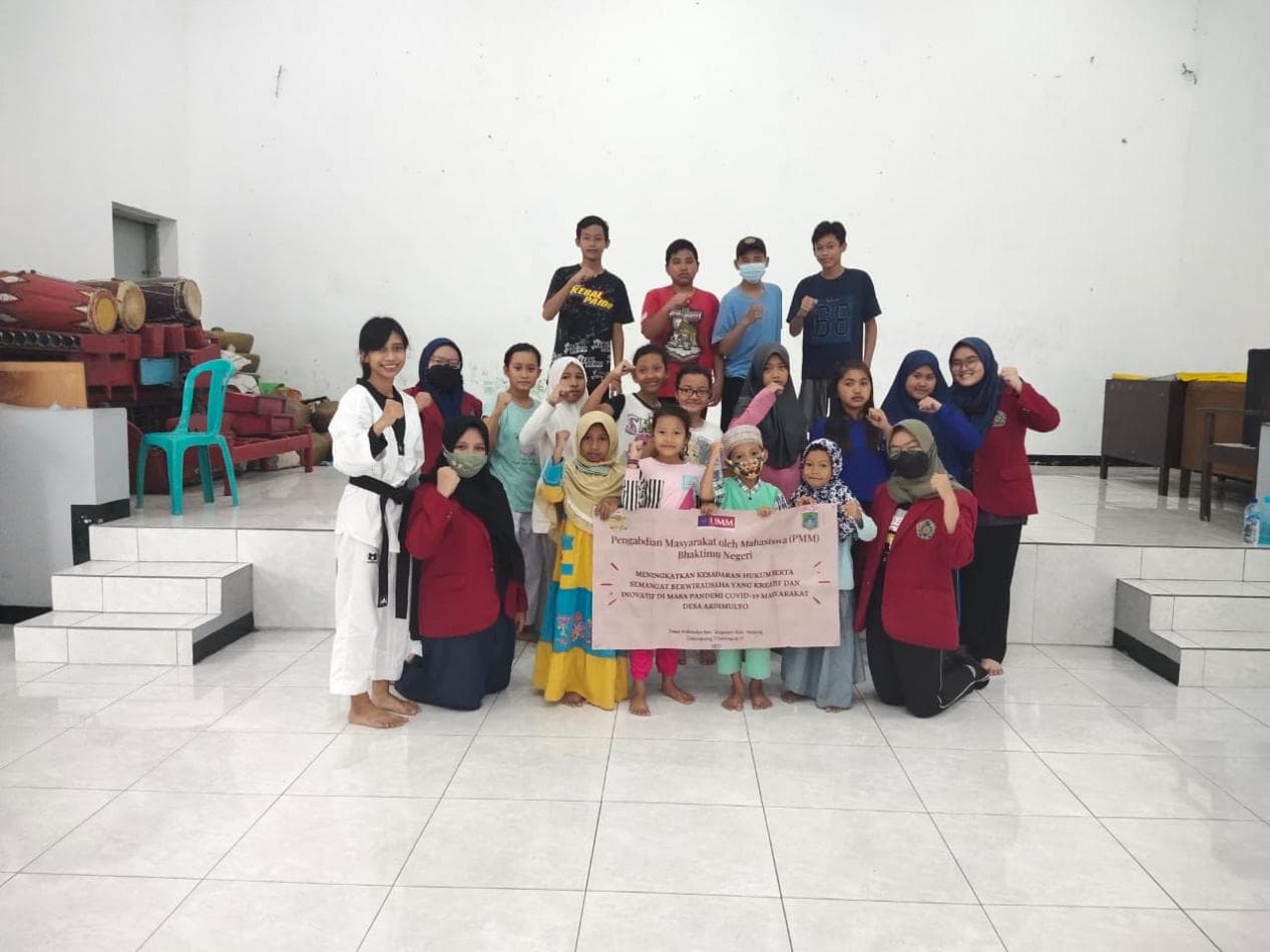 Mahasiswa Universitas Muhammadiyah Malang (UMM) yang tergabung dalam kelompok 91 Pengabdian Masyarakat oleh Mahasiswa (PMM) tahun 2021 dengan Dosen Pembimbing Lapangan Bapak Sholahuddin Al Fatih, S.H., M.H, mengadakan pelatihan taekwondo di Desa Ardimulyo, Kecamatan Singosari, Kabupaten Malang pada hari Sabtu (6/3/2021).