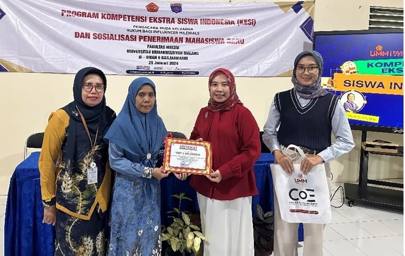 Universitas Muhammadiyah Malang (UMM) baru-baru ini memeriahkan dunia akademis dengan menggelar acara pencerahan melalui program Kompetensi Ekstra Siswa Indonesia (KESI UMM). Dalam suasana yang penuh semangat, Tim Fakultas Hukum UMM, yang dipandu oleh Nur Putri Hidayah, A.Md., SH., MH., dan Dwi Ratna Indri Hapsari, SH. MH., membuka wawasan mengenai peran krusial pengacara muda di Provinsi Kalimantan Selatan. Perhelatan ini, yang berlangsung antara tanggal 23 hingga 25 Januari 2024, disambut dengan antusiasme tinggi dari siswa dan siswi di daerah sekitas, termasuk perwakilan dari SMAN 1 Banjarbaru, SMAN 2 Martapura, SMA Muhammadiyah 1 Banjarmasin, SMAN 7 Banjarmasin, dan SMAN 6 Banjarmasin.